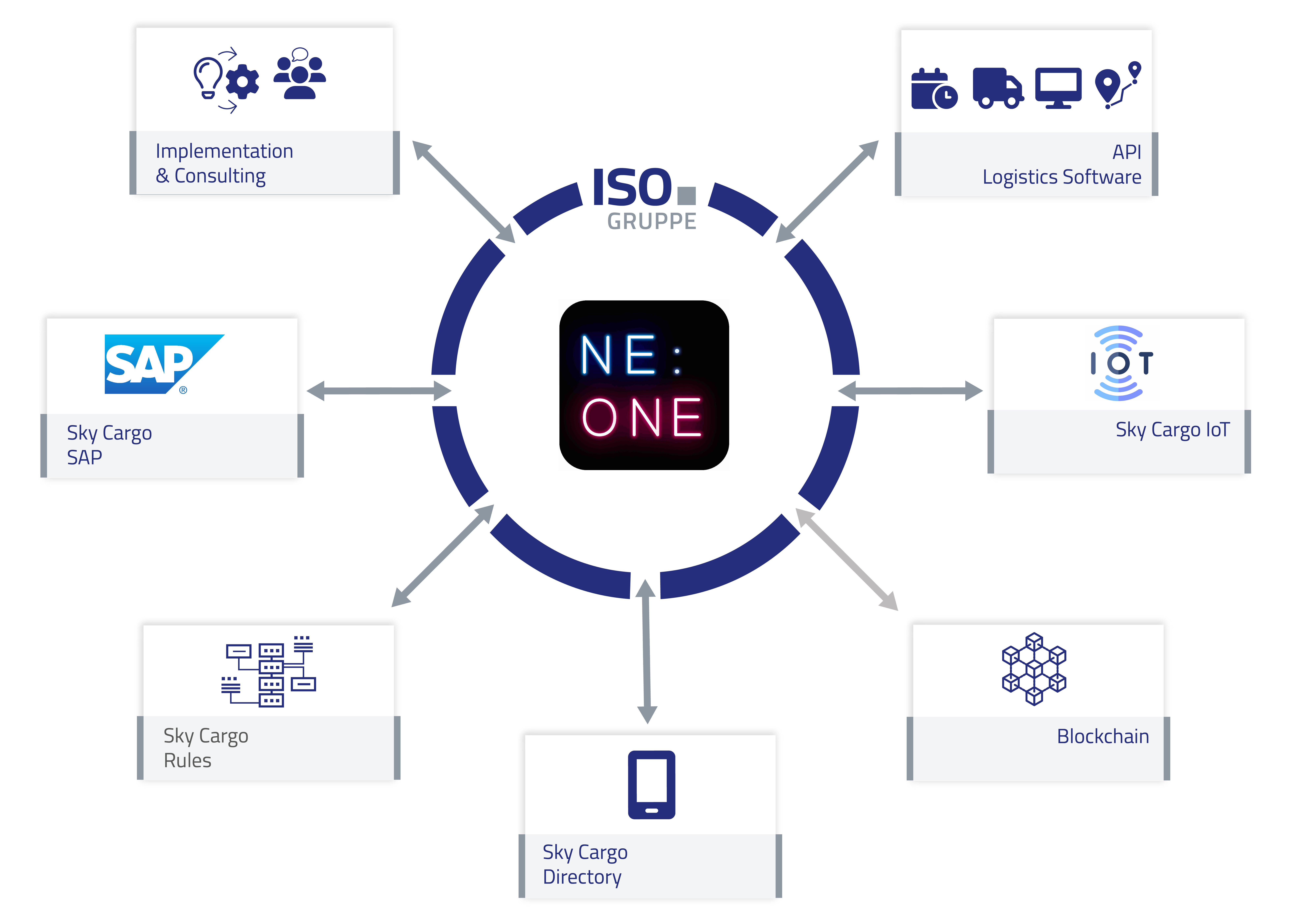 Communication for standardized data exchange along a supply chain is carried out using NE:ONE (= opeN sourcE: ONE record server software), an open source solution whose reference implementation was developed by the ISO-Gruppe on behalf of the Fraunhofer Institute. The development was conducted as part of the DTAC (Digital Test Area Air Cargo) and supported by the BMDV (Federal Ministry for Digital and Transport Affairs). This know-how is now available.